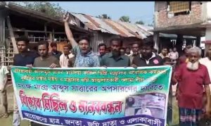 শফিয়ার রহমান পাইকগাছা(খুলনা)প্রতিনিধি:পাইকগাছা উপজেলার ঐতিহ্যবাহী শিক্ষা প্রতিষ্ঠান কপিলমুনি জাফর আউলিয়া ফাজিল ডিগ্রি মাদ্রাসা ধংসের মাষ্টার মাইন্ড ওলামা লীগ নেতা মাদ্রাসার দানের জমি আত্মসাতকারী অধ্যক্ষ মাও আব্দুস সাত্তারের পদত্যাগের দাবিতে বিক্ষোভ মিছিল ও মানববন্ধন অনুষ্ঠিত হয়েছে। ছাত্র-জনতা, জমি দাতা ও এলাকাবাসীর উদ্যোগে রবিবার (২৩ফেব্রুয়ারি) উপজেলার কপিলমুনিতে জাফর আউলিয়া ফাজিল ডিগ্রী মাদ্রাসার পাশে মেইন সড়কে বিক্ষোভ মিছিল ও মানববন্ধনে অংশগ্রহণ করেন ছাত্র জনতার পাশাপাশি, জাফর আউলিয়া ফাজিল ডিগ্রী মাদ্রাসার শিক্ষক, শিক্ষার্থী, মাদ্রাসায় জমি দাতা ও শত শত মানুষের উপস্থিতিতে মানববন্ধন জনসভায় রুপ নেয়।এসময় নারী লোভী দুর্নীতিবাজ অধ্যক্ষ মাও আব্দুস সাত্তার মাদ্রাসা ছেড়ে পালিয়ে যায়। বক্তব্য রাখেন, মাদ্রাসার জমি দাতা শেখ সাহাজুদ্দিন, উপজেলা নিরাপদ সড়কের সভাপতি এইচএম শফিউল ইসলাম, জমি দাতা শেখ ইউনুস আলী, পাইকগাছা রিপোর্টার্স ইউনিটির সভাপতি শেখ সেকেন্দার আলী, শেখ বাবু ,জেলা স্বেচ্ছাসেবক দলের সাবেক সহ-সভাপতি আব্দুল কাদের, মোঃ সোহেল গাজী, মোঃ বিল্লাল হোসেন প্রমুখ।