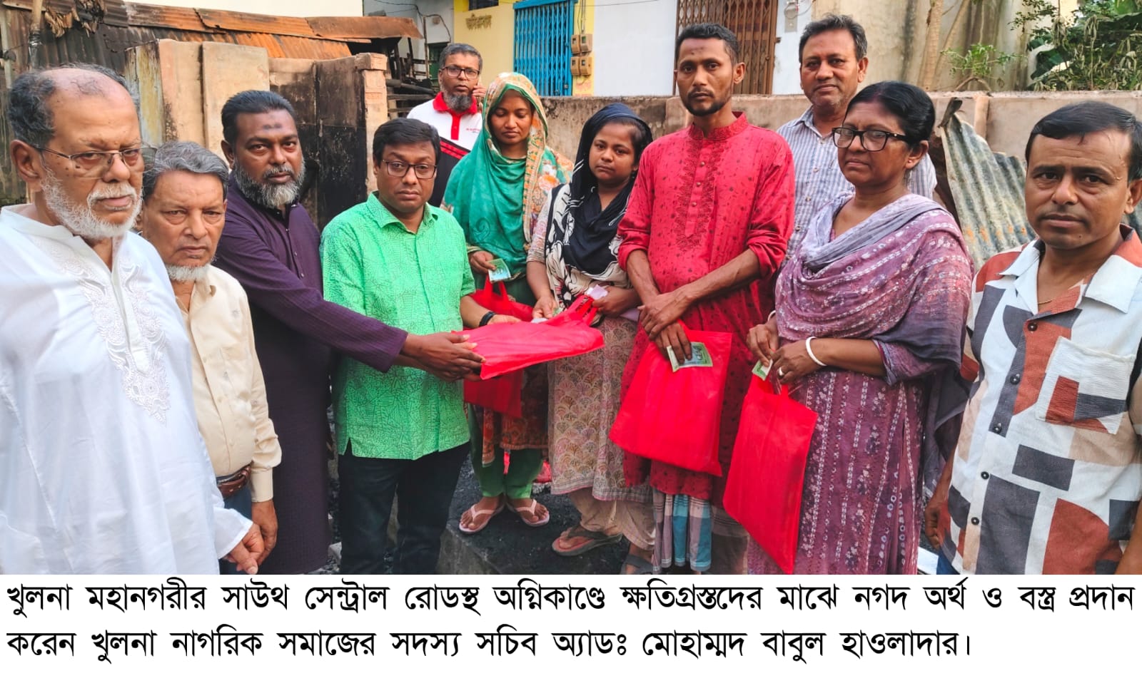 অগ্নিকাণ্ডে ক্ষতিগ্রস্তদের মাঝে সহায়তা দিয়েছেন খুলনা নাগরিক নেতা বাবুল হাওলাদার