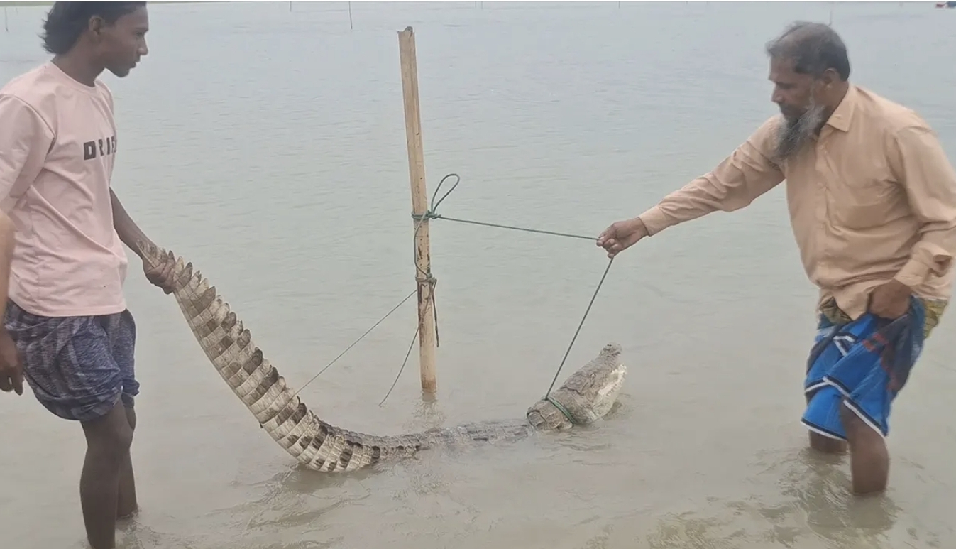 পদ্মায় বড়শিতে ধরা পড়ল কুমির